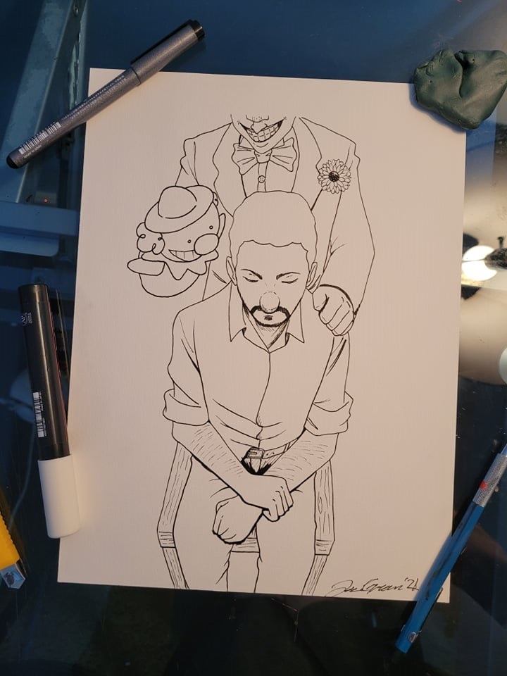 Original artwork heavily inspired by the recent graphic novel series Joker: Killer smile. Featuring the main character done in ink.